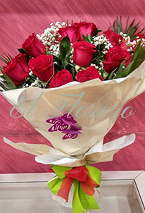 Precioso ramo de 18 estupendas rosas rojas para enamorar.